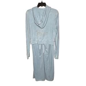 Juicy Couture Frost Blue Two Piece Velour Hooded Crop Tracksuit Set Medium New