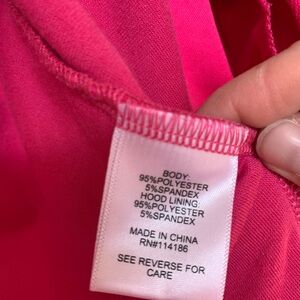 Fuchsia velour jacket with signature branding. Luxurious and chic.