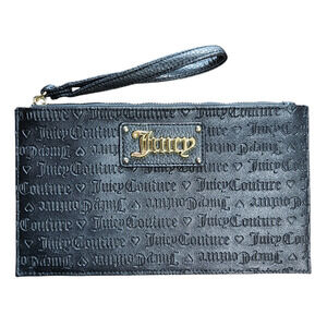 Juicy Couture Furget Me Not wristlet black heart and soul debossed