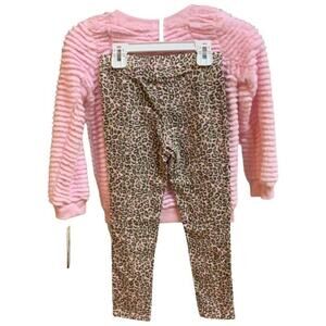Juicy Couture Girls Pink Plush Pullover & Leopard Leggings Set | Sz 5 NWT
