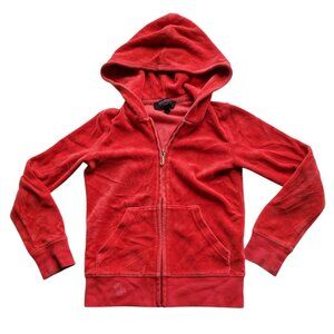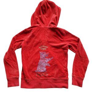 Juicy Couture Girl’s Red Velour Shiny Puppy Rhinestone Crown Graphic Hoodie 6/7