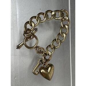 Juicy Couture Gold Chain Link Heart Toggle Bracelet J Charm Jewelry Y2K