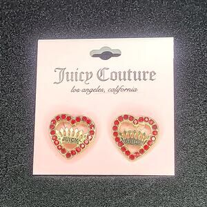 Juicy Couture Gold Heart Red Ruby Garnet Princess Crown Tiara Stud Earrings NEW
