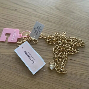 🆕Juicy Couture Gold Metal Chain Belt With Rhinestone Heart Crown Charm S🆕
