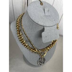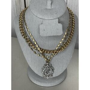 Juicy Couture Gold & Silver Tone Layered Necklace Rhinestone Y2K Chunky