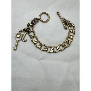 Juicy Couture Gold Tone Cuban Link Bracelet Key & J Charms Toggle Clasp Y2K