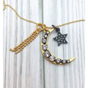 Beautiful Gold Tone Juicy Necklace with Gun Metal Accents and Adorable Moon and Star Pendants Dainty Cable Chain Adjusts to ANY length up to 32" long with just a pull of the chain. So versatile!