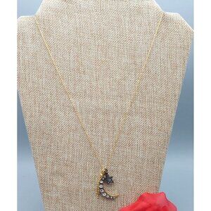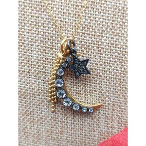 Juicy Couture Gold Tone Pendant Chain Necklace MOON & STARS Long Adjusts to ALL