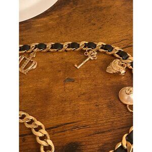 Juicy Couture Gold-Tone & Black Charm Link Dangle Belt M/L Heart Crown Key