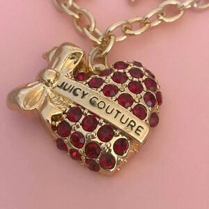 Juicy Couture Gold-Tone Ruby Red Rhinestone Heart Charm Necklace & Bow Earrings