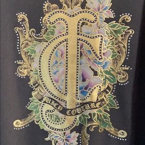Juicy Couture crewneck lightweight sweatshirt high/low hem. Large logo on the front embellished with rhinestones. Excellent Condition