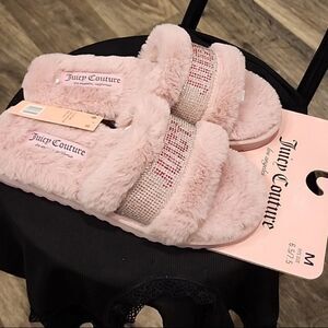 Juicy Couture Halo 2 Rhinestone Logo Slippers- Mauve