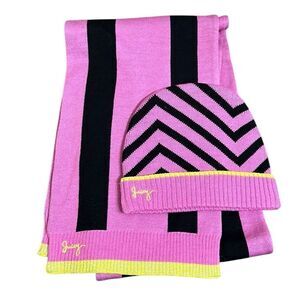 Juicy Couture Hat & Scarf Set Merino Wool Fuchsia Lime Green Matching Winter
