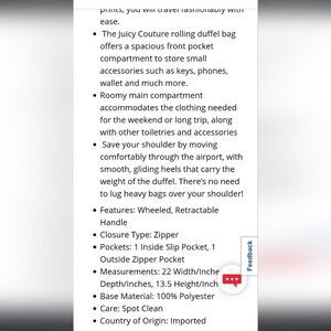 Juicy Couture Heart Cherries Travel Rolling Duffel Bag
