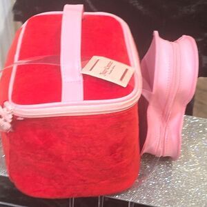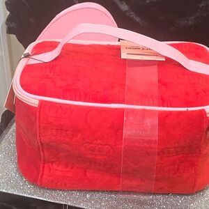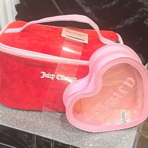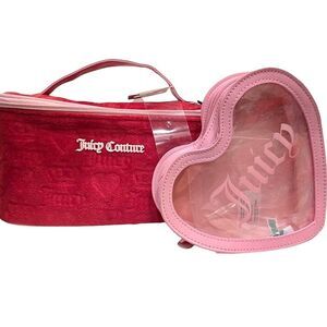Stylish and functional, this Juicy Couture pink cosmetic bag set is perfect for organizing your essentials. The set includes a chic heart-shaped clear bag and a matching pink zippered pouch. Ideal for travel or daily use.