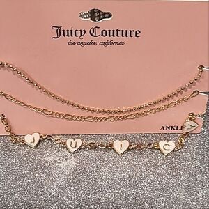 Juicy Couture Heart Logo 3PC Anklet Bracelet Set