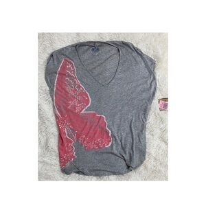 Brand new with tags. So soft and comfortable. Lovely heather grey with butterfly design.