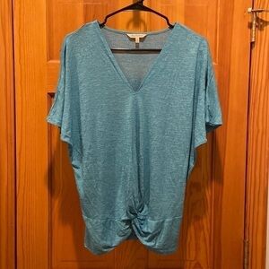 Juicy Couture Heathered Blue V-Neck Twist Waist Short Sleeve Shirt Size Medium
