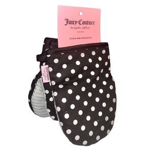 NWT - Juicy Couture Home 2 Pack Black and White Polka Dot Mini Oven Mitts with Silicone Grip. Super cute, glam kitchen accessory every Juicy girl needs when baking for the Holidays. Silicone grip and terry lining for added heat resistance. BRAND NEW, never been used, flawless condition. Offers welcome!