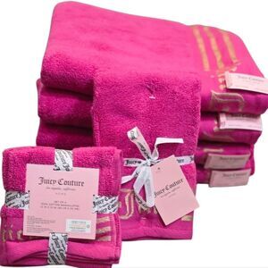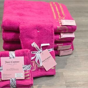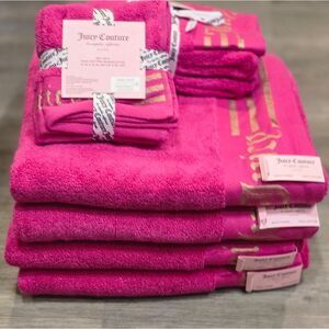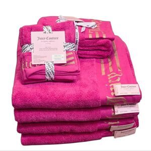 Juicy Couture Home Gold Embossed Stripes Signature Logo Oversized Bath Towel Set