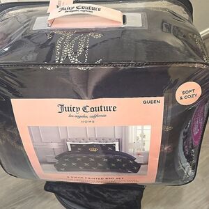 Elevate your bedroom with the luxurious Juicy Couture bedding set. Featuring a stylish black and gold design, this set adds a touch of elegance to any space.