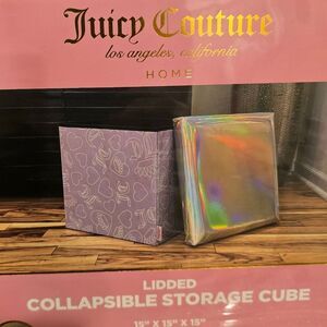 Juicy Couture Home Iridescent JC Crown & Heart Logo Collapsible Storage Ottoman