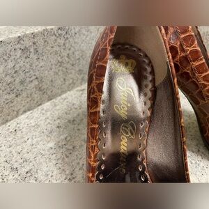 Juicy Couture Embossed Brown Croc Leather Round Toe Loafers Heels Sz 6.5 Italy