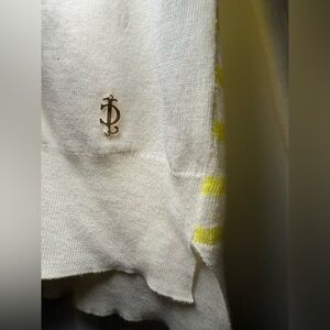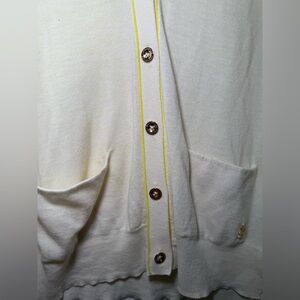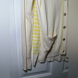 Juicy Couture Ivory Cardigan With Yellow Stripe Back Medium Lightweight V Neck