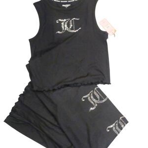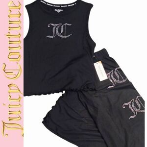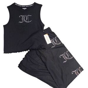 Juicy Couture JC Rhinestone Logo Ribbed Tank & Pants PJ Set- Black