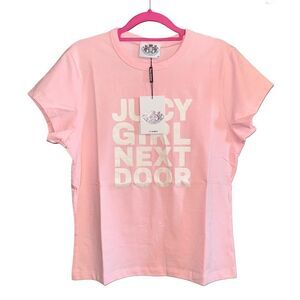 NWT - Juicy Couture ‘JUICY GIRL NEXT DOOR’ Hilton Glitter Short Sleeve Tee in Juicy Pink Size Extra Large. Classic Y2K style t-shirt in bright pink featuring the slogan ‘JUICY GIRL NEXT DOOR’ printed on the front. Finished with a ‘Love Juicy’ print on the neck. BRAND NEW, never been worn, flawless condition. This shirt is only available to purchase overseas and, therefore, is subject to international shipping and tariff costs. As a result, I cannot move on the price much, if at all.