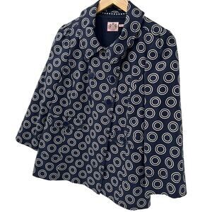 Juicy Couture Jacket Womens Medium Navy Blue Taupe Geometric Pattern