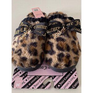 Juicy Couture KAWAKI Faux Fur LEOPARD Slip On Slippers Charm Women’s M 6.5/7.5