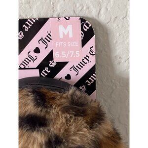 Juicy Couture KAWAKI Faux Fur LEOPARD Slip On Slide Slippers With Charm Women’s Sz M 6.5/7.5 NEW