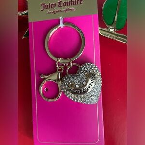 Elegant heart-shaped key holder with sparkling silver accents. Features Juicy Couture branding. Perfect for adding style to your keys.