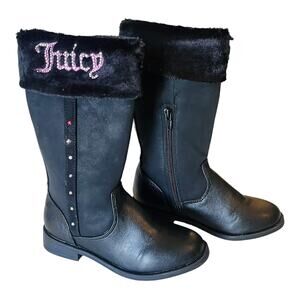 Juicy Couture LOOMIS BOOTS Little Girls 12 Black Vegan Suede Warm Sherpa Fur NEW