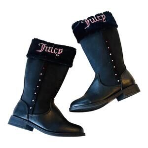 Juicy Couture LOOMIS BOOTS Little Girls 12 Black Vegan Suede Warm Sherpa Fur NEW - NEW Shoes - NEW, Unboxed!
