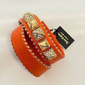 Juicy Couture Leather Jeweled Wrap Bracelet Orange Gold Studs NEW