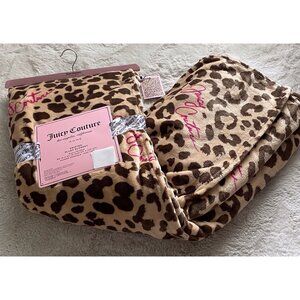 Juicy Couture Leopard And Logo Super Soft Blanket Queen Size 90” X 90” NEW