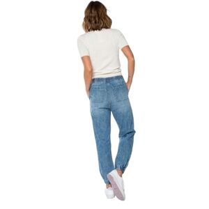 Crafted from breathable cotton denim, these joggers feature a drawstring waist making them both adjustable and comfortable.