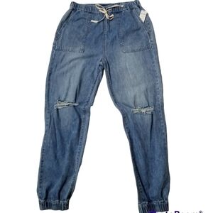 Juicy Couture Light Wash Destroyed Knee Pocket Joggers Size Medium