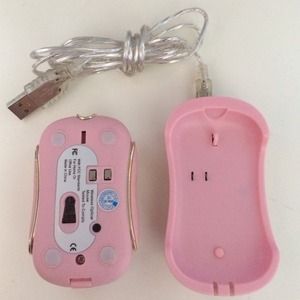 Limited Edition Juicy Couture computer mouse. Has a USB port and hooks up to computer to charge and then when removed from port is wireless.