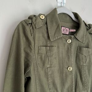 Juicy Couture Linen Green Jacket Cargo ruffle military style Size S