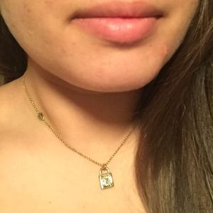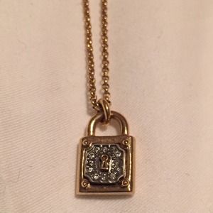 Gold adjustable necklace with a gold lock and added rhinestone details. Never worn, no scratches.