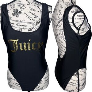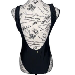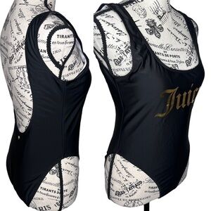 Juicy Couture Black Label One Piece Swimsuit Size Medium Low Scoop Front Deep Scoop Back High Cut