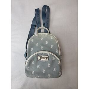 Juicy Couture Logo Mini Backpack Heart Charm Rhinestone Detail Blue Monogram