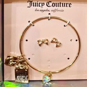 Juicy Couture Logo Shopping Bag, Heart, & Gifts Charm Bracelet & Bow Earring Set