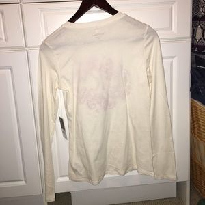 This super cute long sleeve top has a scoop neck. It also has the Juicy Couture insignia in a glitter design.