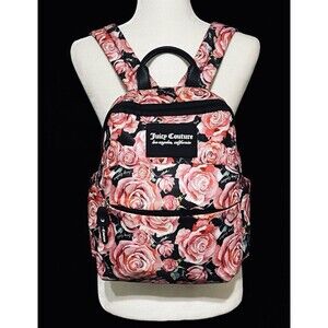 The Juicy Couture In Bloom Backpack is a stylish and versatile accessory for women. Made with satin-polyester material featuring a floral rose pattern in bright hues of pink. Gently pre-owned. Clean. smoke free.