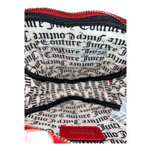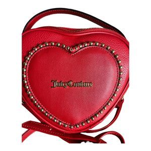This stunning Juicy Couture mini crossbody purse in hot red with gold studs is perfect for any casual occasion. With an adjustable strap and crossbody style, it's easy to wear and carry all your essentials. The bag features a zip closure and a fun hearts logo accent, adding a touch of playfulness to your outfit.