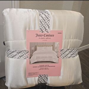 Juicy Couture Luxury Satin Down Alternative Queen Comforter- White